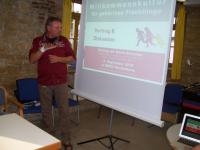 Herr Kalteis begrüßte alle Mitglieder und Gäste, die zu dem Vortrag gekommen waren. Er stellte sich und den Verein „Initiative Schlüssel für Alle e.V.“ Herrn Harro Drescher vor. Herr Drescher stellte sich selbst vor, begrüßt alle Zuhörer und informierte sie über den Ablauf dieser zweitägigen Veranstaltung. Er erzählte von seiner Arbeit und wie er dazu kam, diesen Vortrag zu halten. Er gab uns ein gutes Profil zu seinem Hintergrund. |