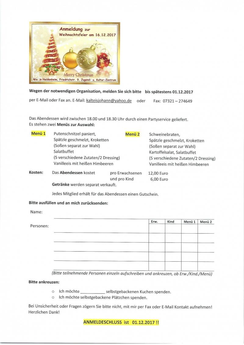 Weihnachtsfeier in HeidenheimAm Samstag, 16.12.2017